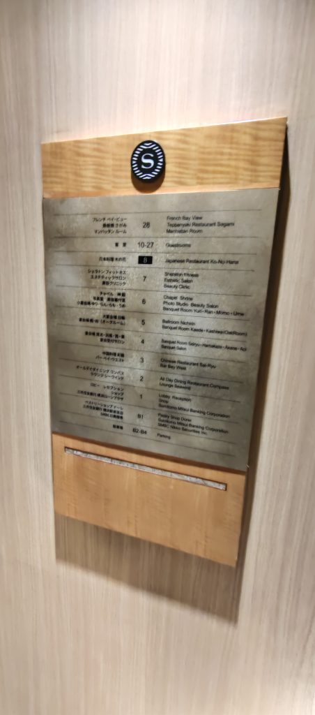 今回「河豚コース」をいただく「木の花」はシェラトンの8階にあるので、エレベーターに乗ります。