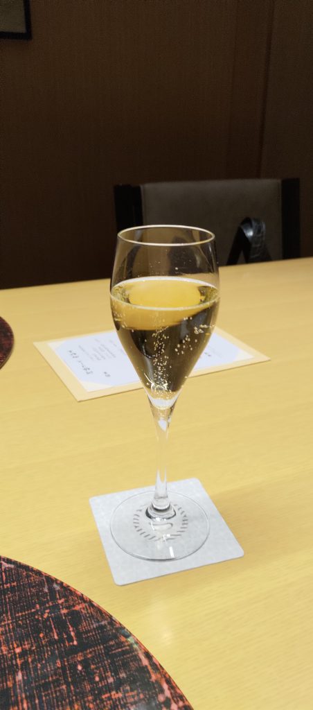 フカヒレ酒の前にシャンパーニュを一杯です。