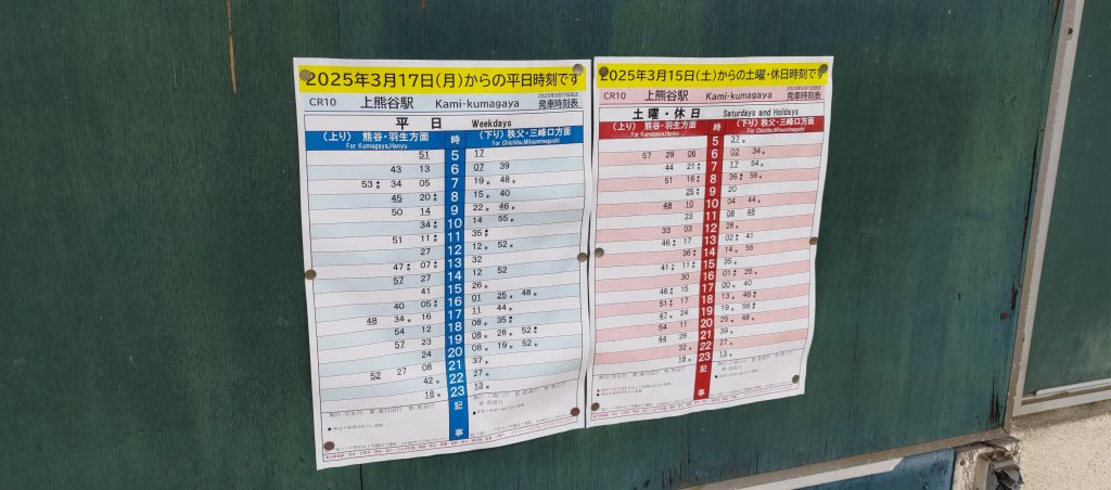 この列車の次の列車に乗るには上熊谷駅及びその周囲で時間を40分ほど潰さねばならないことを意味します。