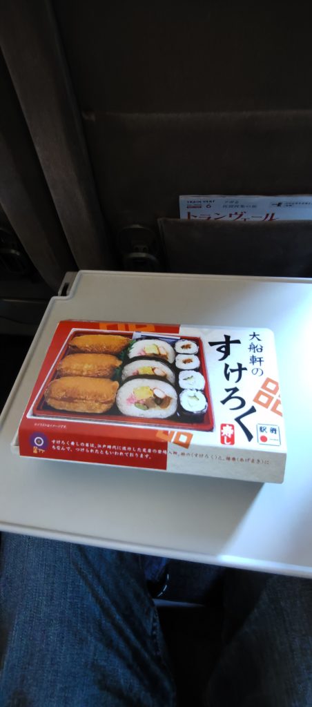 上野駅を発車したところで、東京駅の「駅弁屋 祭」で購入した「大船軒のすけろく」で朝食です。