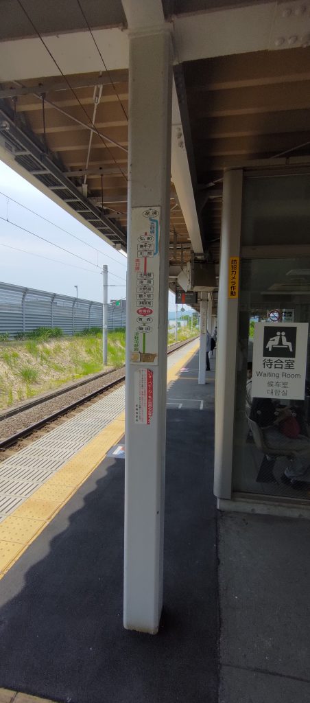 撮影後は、奥羽本線のホーム上の待合室で電車を待とうと思ったのですが、発車15分くらい前から乗車口にお客さんがちらほらと並び始めました。