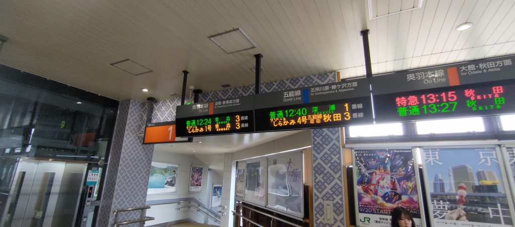 「はやぶさ3号」を下車後は奥羽本線のホームに向かいます。