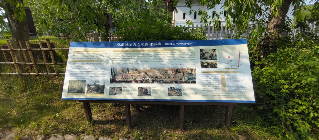現在実施中の修理事業の説明を読んだところで、追手門まで徒歩で戻り、タクシーで弘前駅に戻ります。