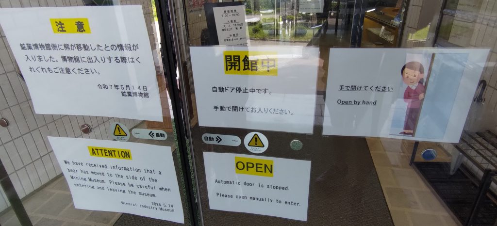 入場券を買うときに中の人に聞いてみたところ、最近熊が出たとのことで熊が入ってこれないようにドアを手動にしているとのことでした。