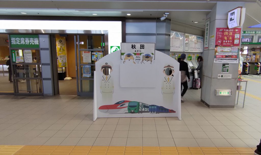 秋田駅に戻った後は待合スペースに移動し、乗車予定の「こまち32号」が到着するまで待つことにします。
