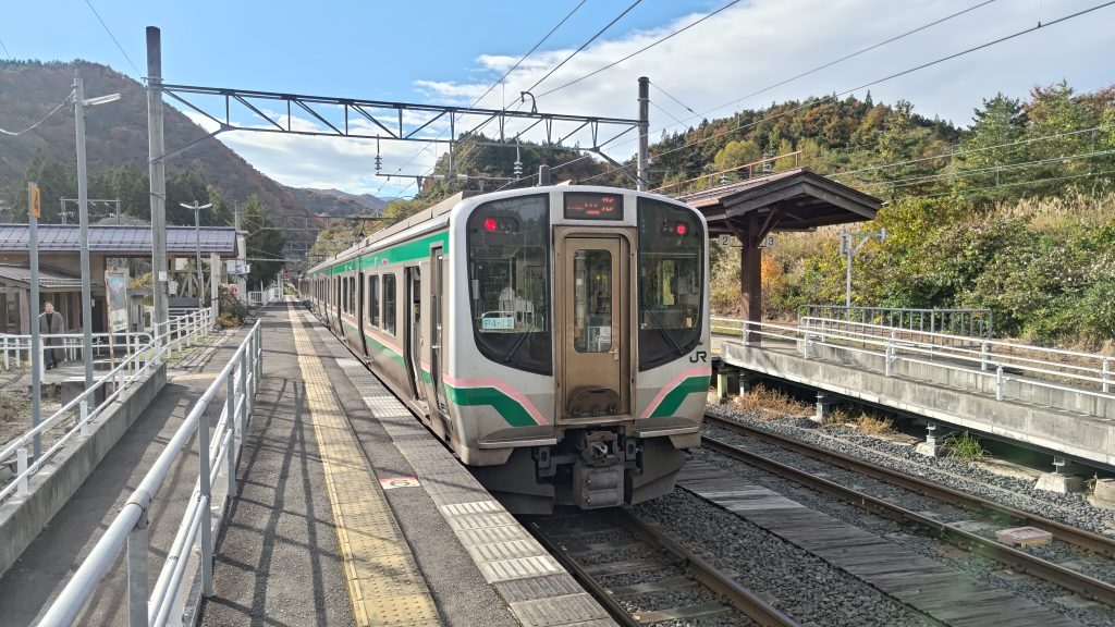 愛子駅からは快速運転になり、愛子駅から14分で次の停車駅の作並駅に到着です。