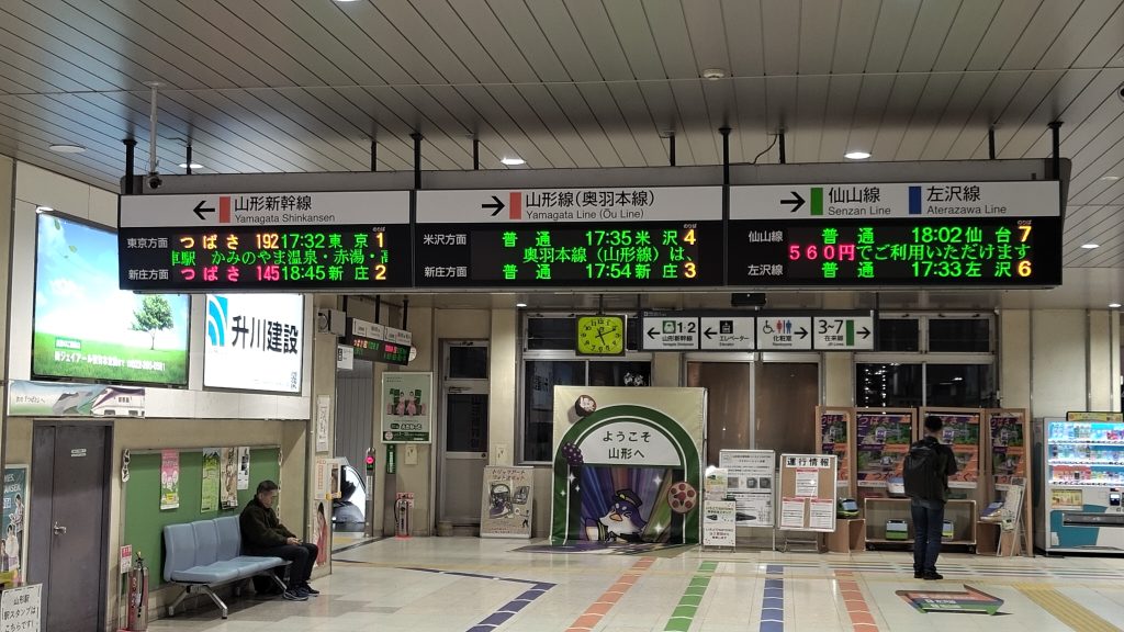 「つばさ192号」が東京方面の発車案内に表示されたので、改札口に向かいます。