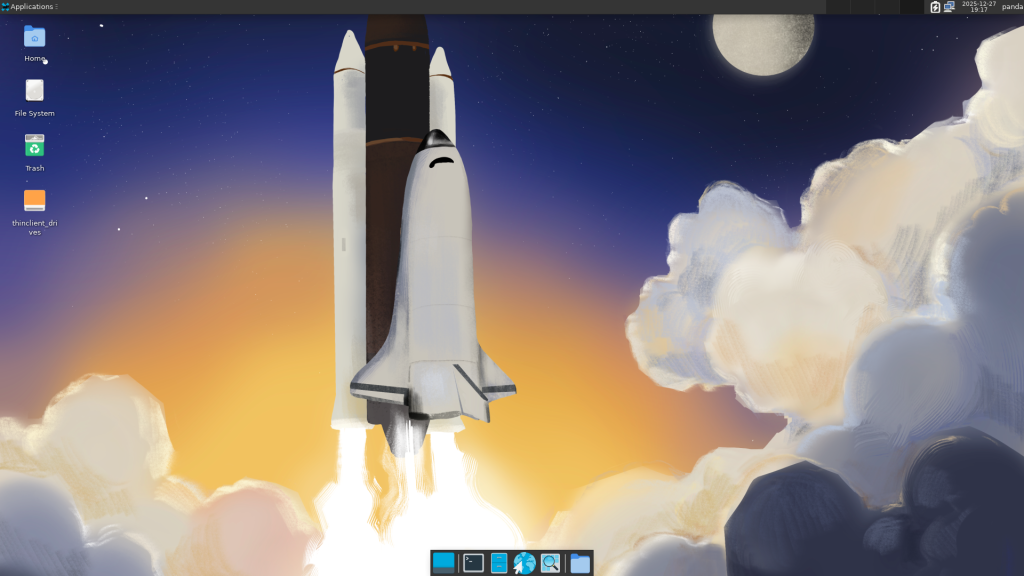 上記設定を実施した結果、xfce4による古典的なデスクトップ画面が表示されるようになりました(「動作確認」の節参照)。