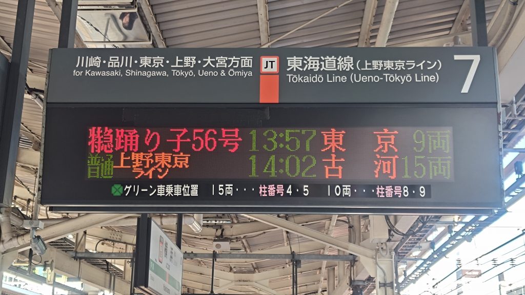 横浜駅からは臨時列車の「踊り子56号」で東京駅に向かいます。