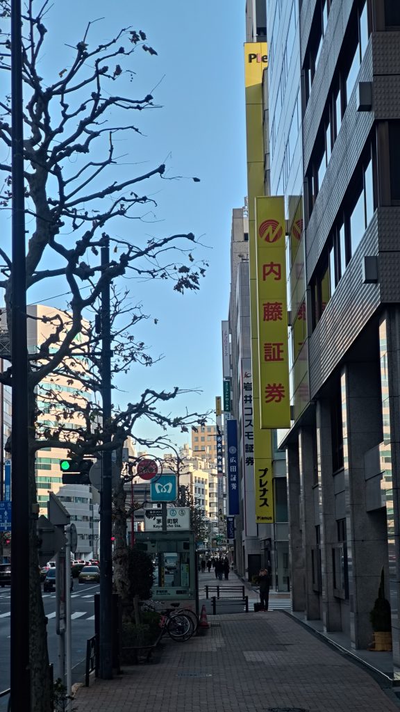 東京駅から徒歩で大手町駅に向かい、東西線で茅場町駅に向かいます。
