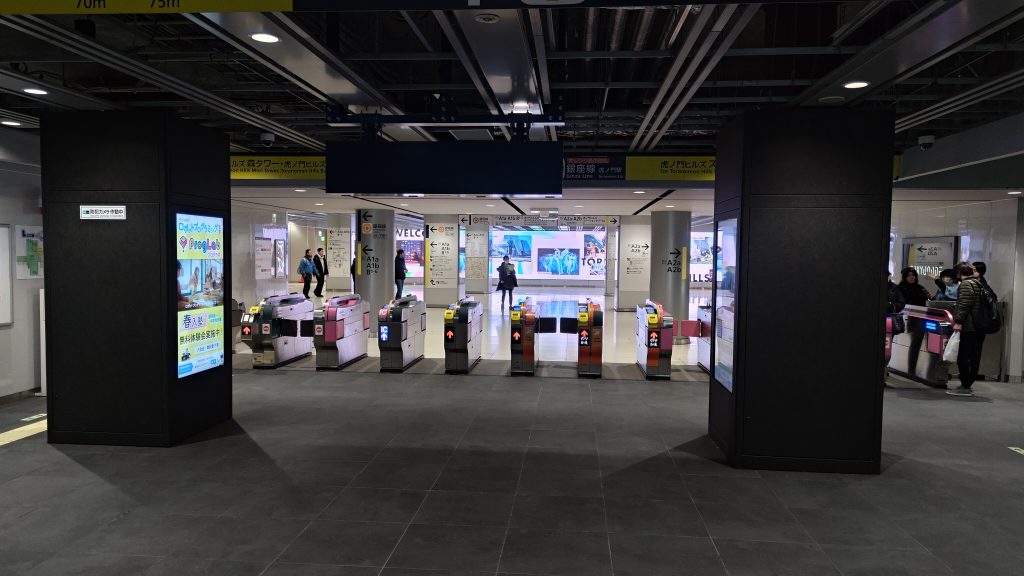 茅場町駅から日比谷線で虎ノ門駅ヒルズに向かい…