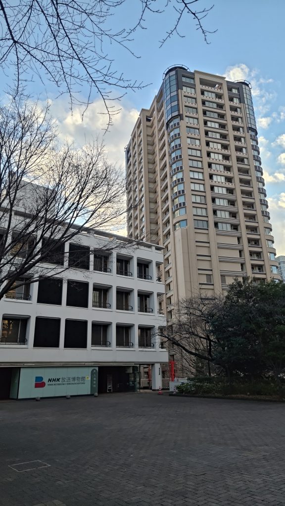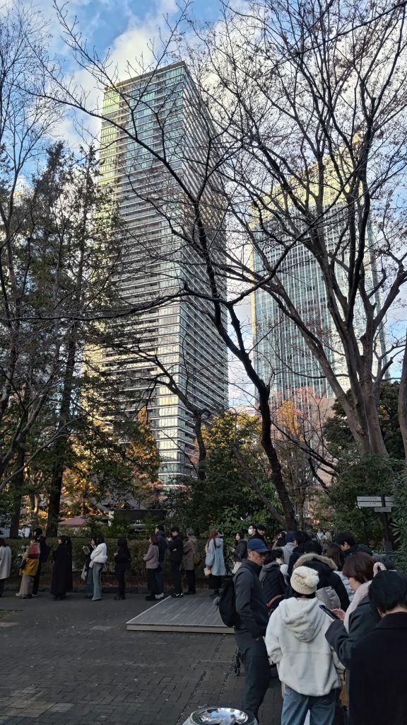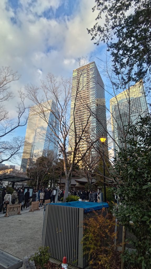 2025年の初詣までは待機列が形成されていたスペースがいい感じに整備されてしまって駐車場などになってしまったためか、並び始めた時点では愛宕神社に隣接するNHKの放送博物館まで待機列がはみ出していました。