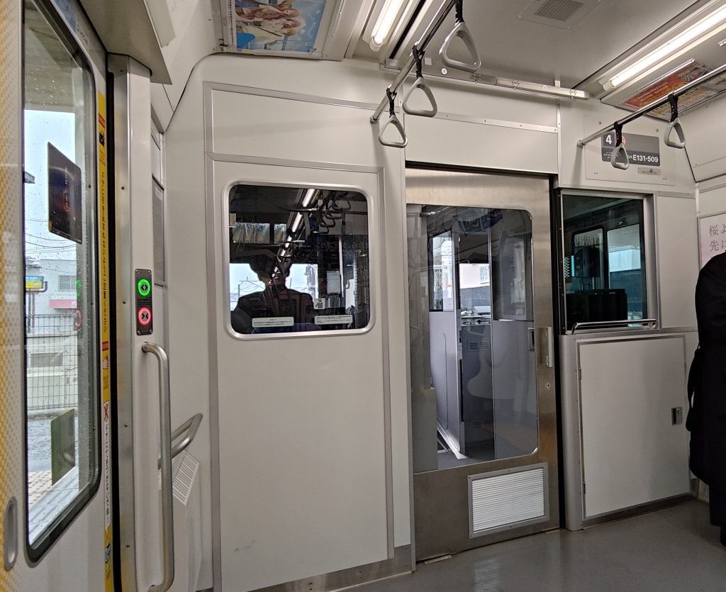 座席に座っていると車内ドア上の案内表示が撮影できなさそうな混雑の具合になってきたことと、社家駅の一つ手前の門沢橋駅に少しばかりの個人的な思い入れがあったので…