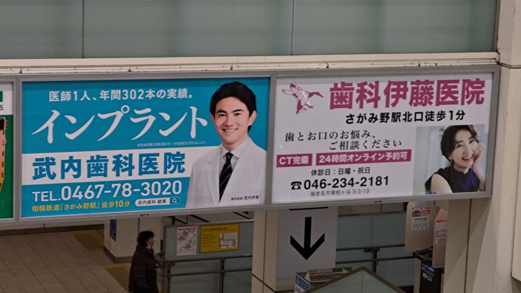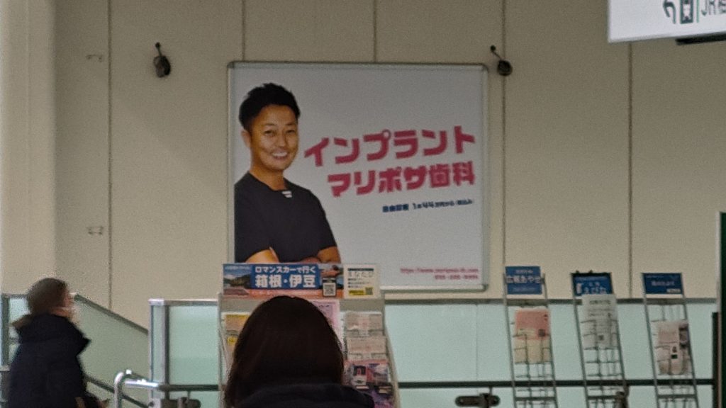 小田急線の改札内にちょっとおしゃれ感と言いますか、軽めのパリピ感を出している歯科医院の広告がありました。
