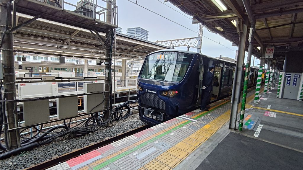 西谷駅で特急横浜行を降りて、湘南台からやってきた和光市行に乗り換えます。