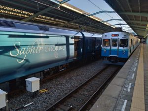 4号車の側面の「Saphir ODORIKO」の巨大ロゴがお出迎えです。