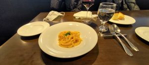 ウニのスパゲティです。意外に赤ワインとよく合ったりします。こってりしてます。